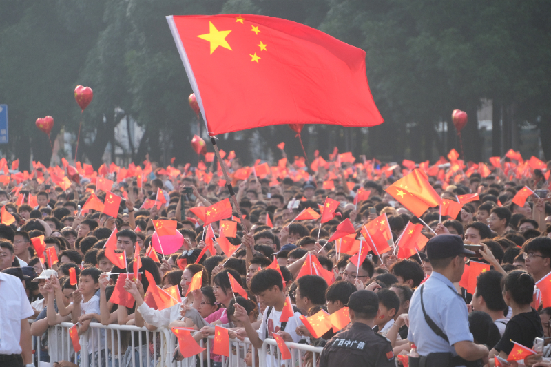 2024年10月1日,南宁在民族广场举行国庆升国旗仪式,广大市民齐聚广场,手持国旗,高唱国歌,共同表达对祖国的美好祝福。徐天保 摄