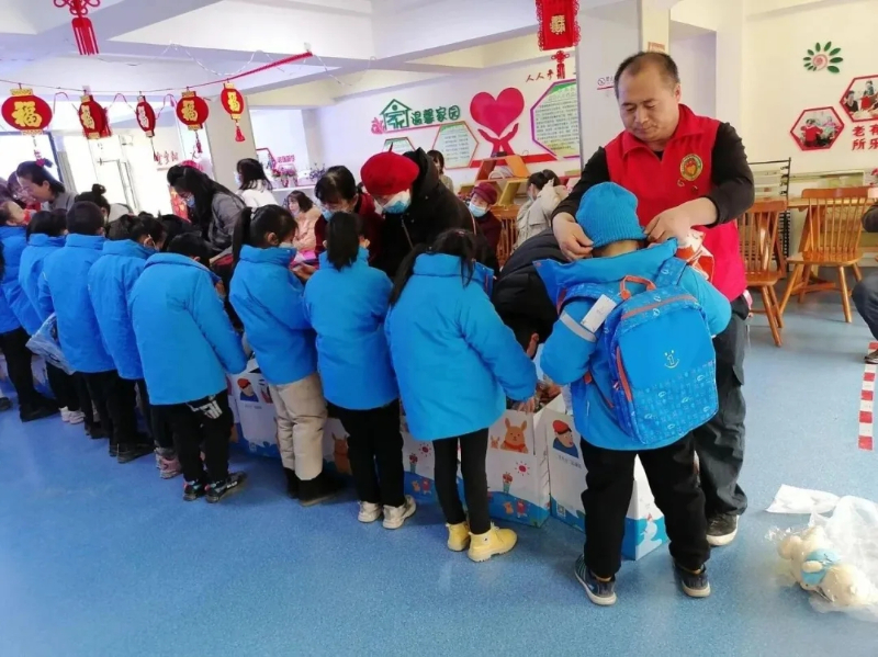 李小平给困境儿童发放温暖包。受访者供图