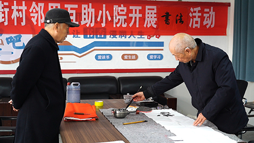 村民在邻里互助小院练习书法。