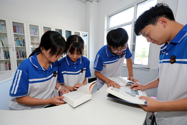 图为营口市高级中学学生开展学习交流(9月23日摄)。新华网发(刘舒摄)