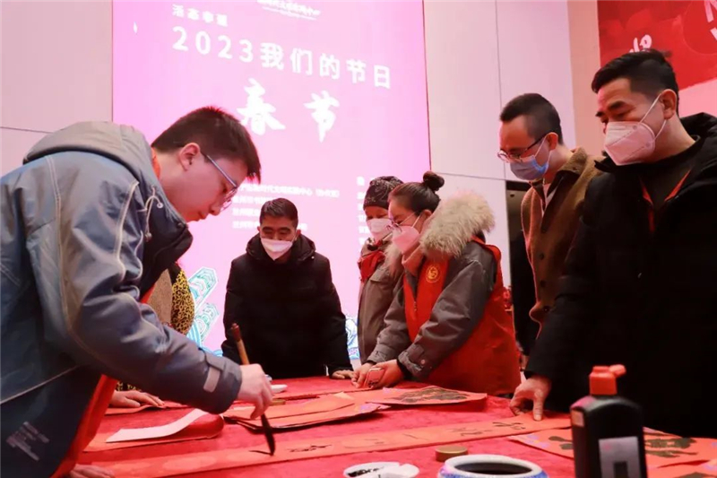 无联不成春,有联春更浓……在2023“我们的节日·春节”新时代文明实践主题活动中,书法家们把对广大市民群众的新春祝福和未来期许融入笔墨中,现场挥毫泼墨,将一张张饱含祝福的“福”字、春联送到群众手中;文艺志愿者一个又一个精彩纷呈的文艺节目,为兰州市民送上了一份份有温度、有内涵的“文化年货”。