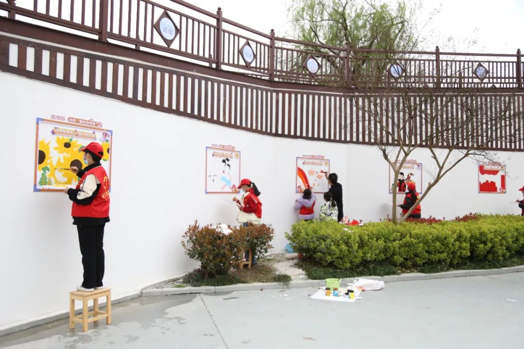 2023年3月18日,海宁市袁花镇乡村少年宫组织孩子们在新时代文明实践所绘制文明墙画。海宁市文明办供图